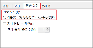 카테고리 없음 Filezilla Client 능동형/수동형 설정 sysly 2024. 3. 6. 10:35 1. 좌측 사이트 관리자 클릭 2. 전송 설정 - 전송 모드 설정 : 기본 / 능동형 / 수동형 체크 공유하기 게시글 관리 시스템 업무 기록